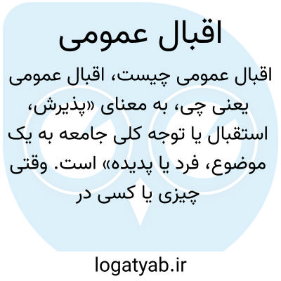 به معنای «پذیرش، استقبال یا توجه کلی جامعه به یک موضوع، فرد یا پدیده» است. وقتی چیزی یا کسی در میان مردم محبوبیت دارد و مورد توجه اکثریت قرار می‌گیرد، گفته می‌شود که «اقبال عمومی دارد».