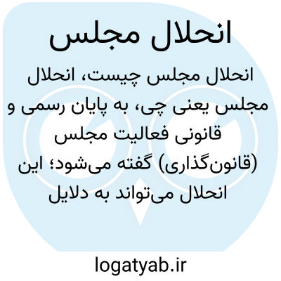 به پایان رسمی و قانونی فعالیت مجلس (قانون‌گذاری) گفته می‌شود؛ این انحلال می‌تواند به دلایل مختلفی از جمله پایان دوره، تصمیمات قانونی یا سیاسی رخ دهد و معمولاً منجر به برگزاری انتخابات جدید یا تشکیل مجلسی جدید خواهد شد.