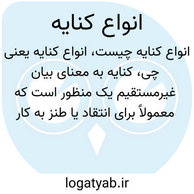 کنایه به معنای بیان غیرمستقیم یک منظور است که معمولاً برای انتقاد یا طنز به کار می‌رود. انواع کنایه شامل کنایه مثبت (تعریف غیرمستقیم)، کنایه منفی (انتقاد غیرمستقیم)، کنایه طنز، کنایه تمسخر و غیره می‌باشد.