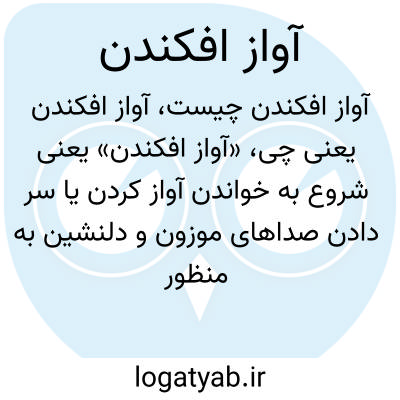 «آواز افکندن» یعنی شروع به خواندن آواز کردن یا سر دادن صداهای موزون و دلنشین به منظور هنرپیشگی، ابراز احساسات، یا برای جلب توجه. این عبارت معمولاً به معنای به صورت بلند و برجسته خواندن آواز است.