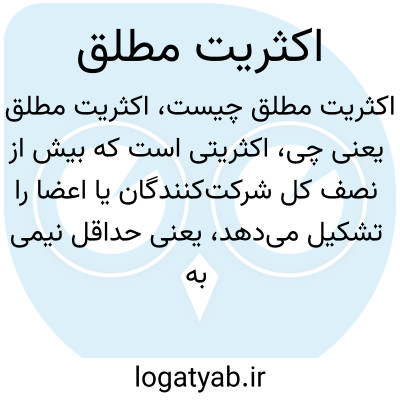 اکثریتی است که بیش از نصف کل شرکتکنندگان یا اعضا را تشکیل میدهد، یعنی حداقل نیمی به علاوه یک. این اصطلاح معمولاً در انتخابات به کار میرود.