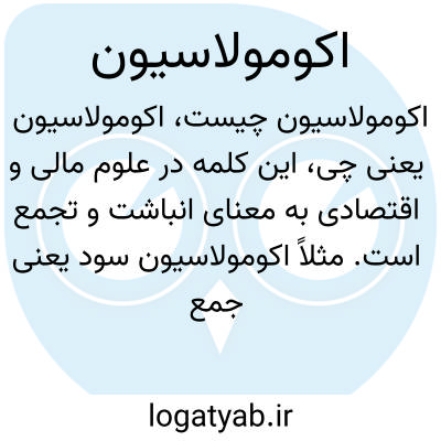 این کلمه در علوم مالی و اقتصادی به معنای انباشت و تجمع است. مثلاً اکومولاسیون سود یعنی جمع شدن و افزایش سودها به مرور زمان. این اصطلاح می‌تواند در زمینه‌های دیگر مانند انباشت مواد یا ذخیره منابع نیز به کار رود.