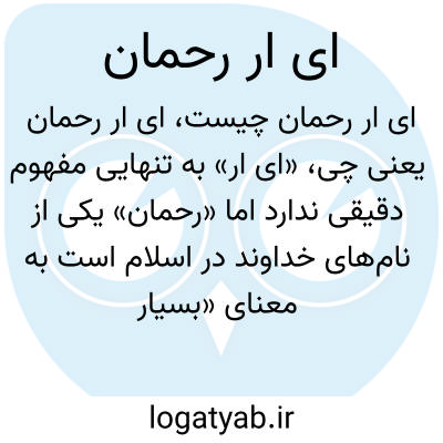 «ای ار» به تنهایی مفهوم دقیقی ندارد اما «رحمان» یکی از نامهای خداوند در اسلام است به معنای «بسیار مهربان» یا «رحمتبخش». اگر منظورتان «ای ار رحمان» عبارتی ادبی یا شعری است، احتمالاً نوعی خطاب یا نام است که باید در بستر آن متن بررسی شود، در غیر این صورت معنای مستقلی ندارد.