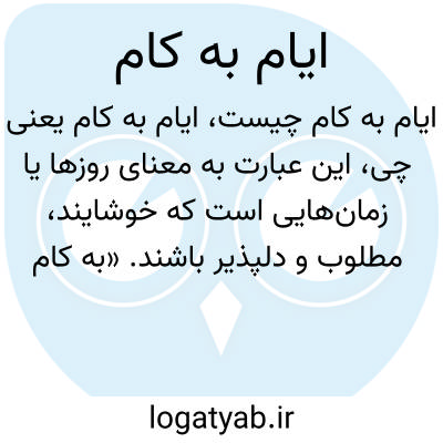 این عبارت به معنای روزها یا زمانهایی است که خوشایند، مطلوب و دلپذیر باشند. «به کام بودن» یعنی مطابق میل و رضایت. بنابراین «ایام به کام» یعنی روزهایی که خوشی و خوشبختی همراه است، معمولاً در متون ادبی برای توصیف دوران شادی به کار میرود.