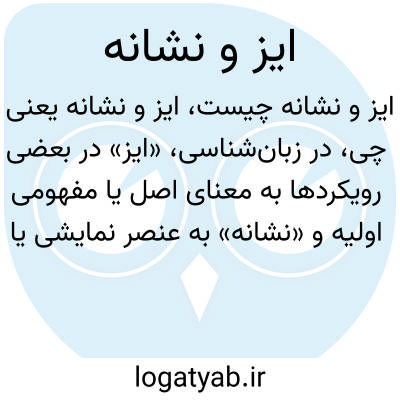 در زبانشناسی، «ایز» در بعضی رویکردها به معنای اصل یا مفهومی اولیه و «نشانه» به عنصر نمایشی یا علامتی گفته میشود که معنایی را انتقال میدهد. نشانهها میتوانند صوتی، بصری یا حرکتی باشند و مفهوم را از فرستنده به گیرنده منتقل کنند.