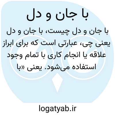 عبارتی است که برای ابراز علاقه یا انجام کاری با تمام وجود استفاده میشود. یعنی «با تمام وجود، قلب و روح». مثلاً: «کار را با جان و دل انجام داد» یعنی با اشتیاق زیاد و همه توان.