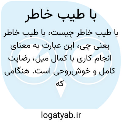 این عبارت به معنای انجام کاری با کمال میل، رضایت کامل و خوشروحی است. هنگامی که گفته میشود کاری را "با طیب خاطر" انجام میدهند، به این معناست که فرد بدون اجبار، آزادانه و با دل خوش آن را پذیرفته یا انجام میدهد.