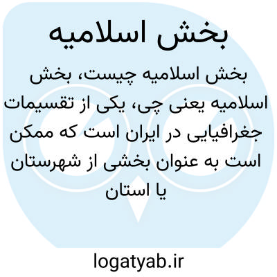 یکی از تقسیمات جغرافیایی در ایران است که ممکن است به عنوان بخشی از شهرستان یا استان شناخته شود و نام آن اسلامیه است. این بخش ممکن است دارای جمعیت، مدیریت و ویژگی‌های خاص خود باشد.