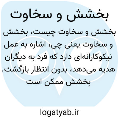اشاره به عمل نیکوکارانه‌ای دارد که فرد به دیگران هدیه می‌دهد، بدون انتظار بازگشت. بخشش ممکن است مالی یا معنوی باشد و سخاوت نیز به روحی بزرگ و مهربان اطلاق می‌شود که دست‌ودل‌بازی دارد و تمایل به کمک به دیگران دارد.