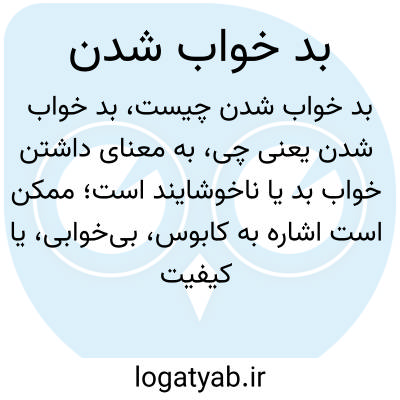 به معنای داشتن خواب بد یا ناخوشایند است؛ ممکن است اشاره به کابوس، بی‌خوابی، یا کیفیت پایین خواب داشته باشد که باعث خستگی و کسالت در فرد می‌شود. در فرهنگ‌های عامیانه معمولاً خواب بد نشانه‌ی مشکلات یا حوادث منفی آینده فرض می‌شود.