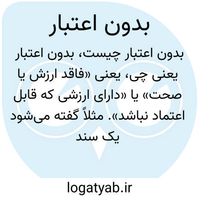 یعنی «فاقد ارزش یا صحت» یا «دارای ارزشی که قابل اعتماد نباشد». مثلاً گفته می‌شود یک سند بدون اعتبار است، یعنی قابل پیروی یا اتکا نیست.