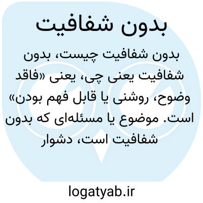 یعنی «فاقد وضوح، روشنی یا قابل فهم بودن» است. موضوع یا مسئله‌ای که بدون شفافیت است، دشوار فهم یا گنگ است و اطلاعات کافی یا دقیق در مورد آن وجود ندارد.