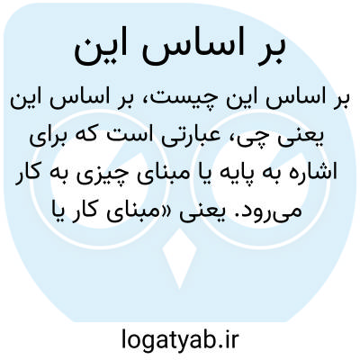 عبارتی است که برای اشاره به پایه یا مبنای چیزی به کار میرود. یعنی «مبنای کار یا استدلال بر چیزی قرار گرفتن». مثلا «بر اساس این اطلاعات تصمیم گرفته شد».