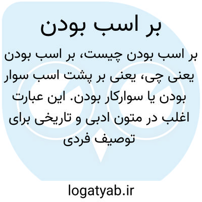 یعنی بر پشت اسب سوار بودن یا سوارکار بودن. این عبارت اغلب در متون ادبی و تاریخی برای توصیف فردی که در حال اسب سواری است به کار می‌رود و نشان‌دهنده آمادگی برای حرکت، جنگ یا سفر است.