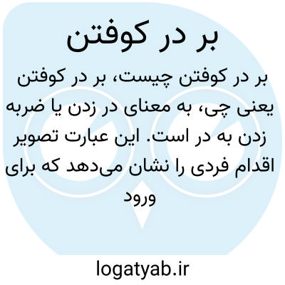 به معنای در زدن یا ضربه زدن به در است. این عبارت تصویر اقدام فردی را نشان میدهد که برای ورود یا جلب توجه، در را میکوبد و معمولاً نماد درخواست ورود یا ملاقات است.