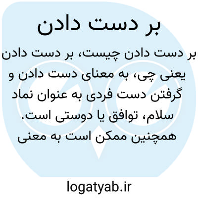 به معنای دست دادن و گرفتن دست فردی به عنوان نماد سلام، توافق یا دوستی است. همچنین ممکن است به معنی مواجهه یا روبرو شدن با وضعیتی نیز به کار رود.