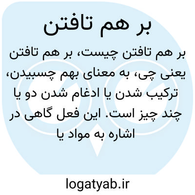 به معنای بهم چسبیدن، ترکیب شدن یا ادغام شدن دو یا چند چیز است. این فعل گاهی در اشاره به مواد یا مفاهیم به کار میرود که با هم تداخل یا تلاقی دارند.