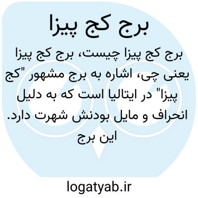 اشاره به برج مشهور "کج پیزا" در ایتالیا است که به دلیل انحراف و مایل بودنش شهرت دارد. این برج با شیب خاص خود یکی از بناهای معروف تاریخی و گردشگری جهان است.