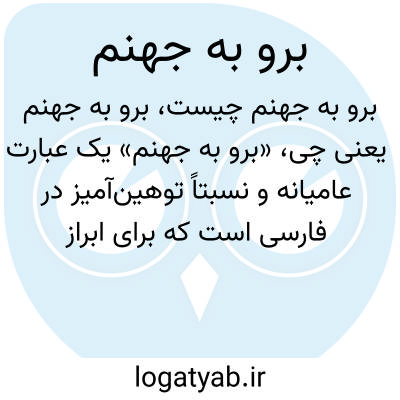 «برو به جهنم» یک عبارت عامیانه و نسبتاً توهینآمیز در فارسی است که برای ابراز خشم و ناراحتی به کار میرود. مفهوم این عبارت دعوت طرف مقابل به مکانی نامطلوب و آتشین (جهنم) است و معمولاً در موقعیتهای عصبانیت یا اختلاف به کار میرود.