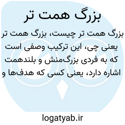 این ترکیب وصفی است که به فردی بزرگمنش و بلندهمت اشاره دارد، یعنی کسی که هدفها و آرزوهای بزرگی دارد و برای رسیدن به آنها تلاش میکند. "همت تر" یعنی دارای همت و اراده بیشتر و بزرگ همت تر یعنی بلندپروازتر و با ارادهای قویتر.