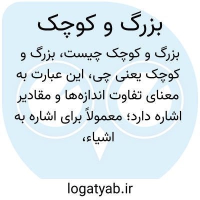 این عبارت به معنای تفاوت اندازهها و مقادیر اشاره دارد؛ معمولاً برای اشاره به اشیاء، افراد، یا مفاهیم با اندازهها یا درجههای متفاوت به کار میرود. به عنوان مثال، بزرگی و کوچکی اشیاء یا تفاوت سنی افراد در یک گروه.