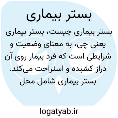 به معنای وضعیت و شرایطی است که فرد بیمار روی آن دراز کشیده و استراحت میکند. بستر بیماری شامل محل و شرایطی است که برای مراقبت از بیمار فراهم میشود تا روند بهبودی او سریعتر انجام شود.