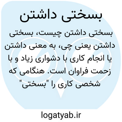 به معنی داشتن یا انجام کاری با دشواری زیاد و با زحمت فراوان است. هنگامی که شخصی کاری را "بسختی" انجام میدهد یعنی آن کار برایش سخت و طاقتفرسا است.