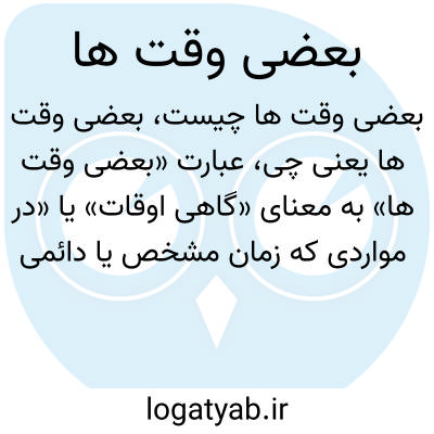 عبارت «بعضی وقت ها» به معنای «گاهی اوقات» یا «در مواردی که زمان مشخص یا دائمی نیست» می‌باشد. این عبارت برای اشاره به اتفاقاتی که به صورت متناوب یا نامنظم رخ می‌دهند به کار می‌رود.