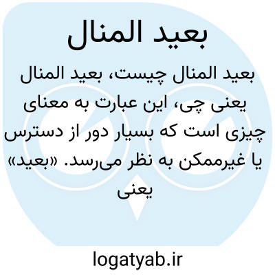 این عبارت به معنای چیزی است که بسیار دور از دسترس یا غیرممکن به نظر می‌رسد. «بعید» یعنی دور و غیرقابل دستیابی، و «المنال» به معنی آن چیزی است که بتوان به آن رسید. بنابراین «بعید المنال» یعنی بسیار دور از امکان دستیابی.