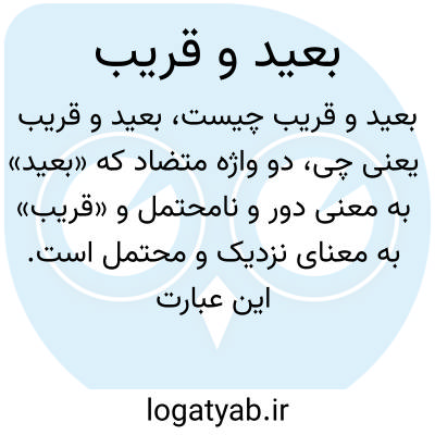 دو واژه متضاد که «بعید» به معنی دور و نامحتمل و «قریب» به معنای نزدیک و محتمل است. این عبارت معمولاً برای بیان قلمرو احتمال و امکان استفاده می‌شود.