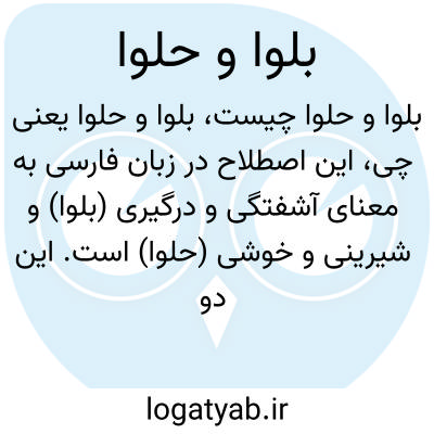 این اصطلاح در زبان فارسی به معنای آشفتگی و درگیری (بلوا) و شیرینی و خوشی (حلوا) است. این دو کلمه اغلب در کنار هم به کار می‌روند تا تضاد بین مشکلات و شادی‌ها را نشان دهند یا به صورت ضرب‌المثل برای توصیف وضعیت پیچیده به‌کار روند.