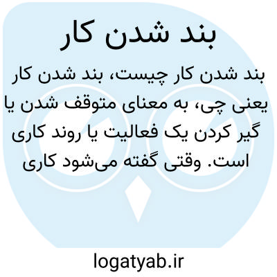 به معنای متوقف شدن یا گیر کردن یک فعالیت یا روند کاری است. وقتی گفته می‌شود کاری بند شده است یعنی انجام آن متوقف شده یا به مشکل برخورده و پیشرفت نمی‌کند.