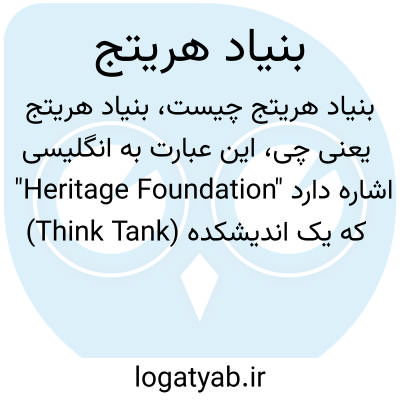 این عبارت به انگلیسی "Heritage Foundation" اشاره دارد که یک اندیشکده (Think Tank) محافظه‌کار آمریکایی است. "بنیاد" به معنای مؤسسه یا سازمان پایه‌گذاری شده است و "هریتج" نیز به معنای میراث و فرهنگ است. بنابراین "بنیاد هریتج" یعنی مؤسسه‌ای که به مسائل میراث فرهنگی، سیاست‌های عمومی و تحقیقات مرتبط می‌پردازد.