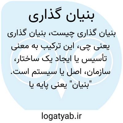 این ترکیب به معنی تأسیس یا ایجاد یک ساختار، سازمان، اصل یا سیستم است. "بنیان" یعنی پایه یا اساس و "گذاری" به معنی گذاشتن یا قرار دادن است. بنابراین "بنیان گذاری" اشاره به انجام عملی دارد که موجب شکل‌گیری پایه‌های یک نهاد یا ساختار می‌شود.