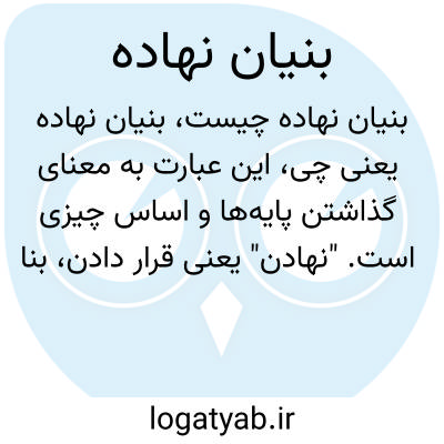 این عبارت به معنای گذاشتن پایهها و اساس چیزی است. "نهادن" یعنی قرار دادن، بنا کردن و "بنیان" یعنی اساس. پس "بنیان نهاده" یعنی چیزی که پایههای آن قرار گرفته و مستحکم شده است.