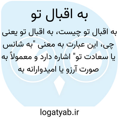 این عبارت به معنی "به شانس یا سعادت تو" اشاره دارد و معمولاً به صورت آرزو یا امیدوارانه به کار می‌رود. "اقبال" به معنای بخت، شانس و سعادت است. پس "به اقبال تو" می‌تواند معنایی چون "به شانس و سعادت تو" داشته باشد.
