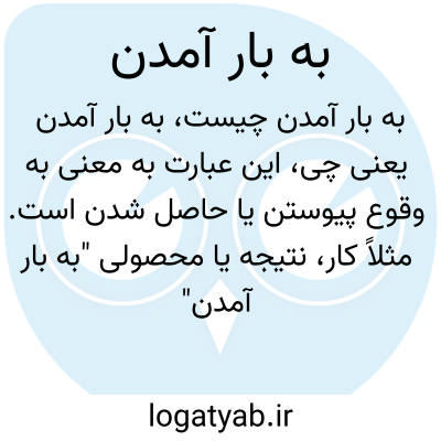 این عبارت به معنی به وقوع پیوستن یا حاصل شدن است. مثلاً کار، نتیجه یا محصولی "به بار آمدن" یعنی آن کار انجام گرفته و نتیجه داده است.