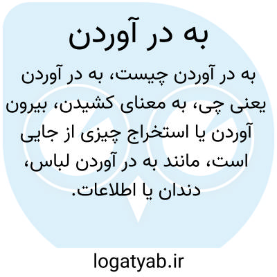 به معنای کشیدن، بیرون آوردن یا استخراج چیزی از جایی است، مانند به در آوردن لباس، دندان یا اطلاعات.