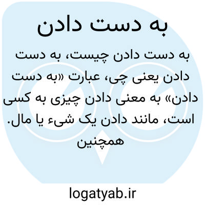 عبارت «به دست دادن» به معنی دادن چیزی به کسی است، مانند دادن یک شیء یا مال. همچنین ممکن است در معنای از دست دادن چیزی به کار رود، مثلا به دست دادن فرصت یا شکست خوردن.