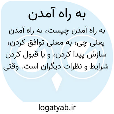به معنی توافق کردن، سازش پیدا کردن، و یا قبول کردن شرایط و نظرات دیگران است. وقتی کسی با دیگری به راه بیاید، یعنی همراهی و همفکری میکند.