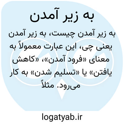 این عبارت معمولاً به معنای «فرود آمدن»، «کاهش یافتن» یا «تسلیم شدن» به کار میرود. مثلاً در مورد کسی که از جایگاه یا مقام خود پایین میآید یا کسی که در مقابل فشارها تسلیم میشود.