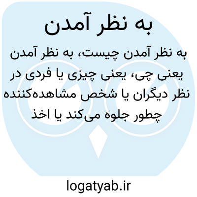 یعنی چیزی یا فردی در نظر دیگران یا شخص مشاهده‌کننده چطور جلوه می‌کند یا اخذ می‌شود. همچنین ممکن است به معنای رسیدن به یک برداشت یا قضاوت اولیه باشد. مثلاً: «او به نظر مردی مهربان می‌آمد.»