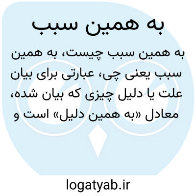 عبارتی برای بیان علت یا دلیل چیزی که بیان شده، معادل «به همین دلیل» است و نشان‌دهنده رابطه علت و معلولی میان دو جمله یا مفهوم است.