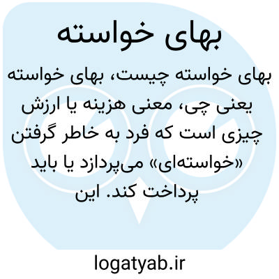 معنی هزینه یا ارزش چیزی است که فرد به خاطر گرفتن «خواسته‌ای» می‌پردازد یا باید پرداخت کند. این تقاضا ممکن است از جنس مادی یا معنوی باشد. ممکن است به قیمت یا عواقب خواسته اشاره کند.