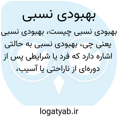 بهبودی نسبی به حالتی اشاره دارد که فرد یا شرایطی پس از دوره‌ای از ناراحتی یا آسیب، تا حدی بهتر شده اما هنوز به سطح کامل سلامتی یا شرایط ایده‌آل نرسیده است. این اصطلاح معمولاً برای وضعیت بیمار یا شرایط نامطلوب به کار می‌رود.