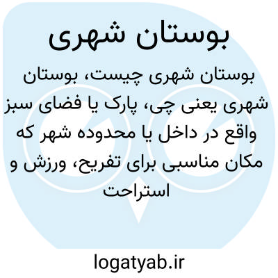 پارک یا فضای سبز واقع در داخل یا محدوده شهر که مکان مناسبی برای تفریح، ورزش و استراحت شهروندان فراهم می‌کند. بوستان‌های شهری به حفظ بهداشت روان و ارتقای کیفیت زندگی مردم کمک می‌کنند.