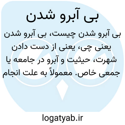 یعنی از دست دادن شهرت، حیثیت و آبرو در جامعه یا جمعی خاص. معمولاً به علت انجام کار ناپسند یا افشای رازها و ضعفها گفته میشود که باعث ناراحتی و احترامزدایی فرد شود.