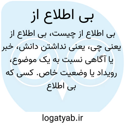 یعنی نداشتن دانش، خبر یا آگاهی نسبت به یک موضوع، رویداد یا وضعیت خاص. کسی که بی اطلاع است، نمی‌داند یا از چیزی خبر ندارد و ممکن است به دلیل عدم دسترسی به اطلاعات یا توجه نکردن، این حالت را داشته باشد.