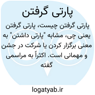 مشابه "پارتی داشتن" به معنی برگزار کردن یا شرکت در جشن و مهمانی است. اکثراً به مراسمی گفته میشود که جهت شادی و تفریح با حضور جمعی از افراد به مناسبت خاص ترتیب داده میشود.