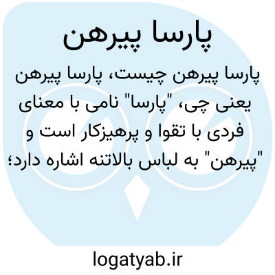 "پارسا" نامی با معنای فردی با تقوا و پرهیزکار است و "پیرهن" به لباس بالاتنه اشاره دارد؛ بنابراین این عبارت ممکن است به نام یک برند، شخصیت یا نوع خاصی از لباس با ویژگیهای انسانی (پارسا) اشاره داشته باشد. به صورت ترکیبی معنای مستقلی ندارد.